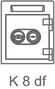 - Во горниот дел на касата се наоѓа фиока (K8 df) или отвор (K8-3d), преку која се уфрлуваат пари, документи и сл. во долниот дел и истите може да бидат извадени само од овластено лице.